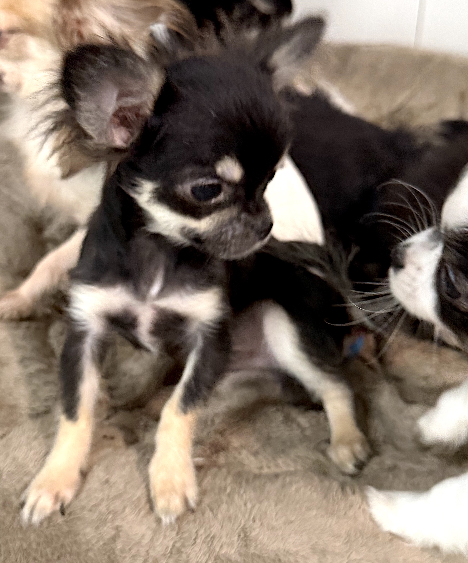 Nous avons le plaisir de vous présenter nos chiots Chihuahua LOF à poil long, nés et élevés dans notre maison, au cœur de la Sologne. Ici, pas de cages : nos petits grandissent entourés d’amour, habitués aux enfants, aux câlins et aux bruits du quotidien. Chaque chiot bénéficie d’une attention particulière afin de garantir santé, équilibre et une belle socialisation avant son départ. Sur cette page, vous découvrirez nos chiots disponibles avec leurs caractéristiques (sexe, âge, couleur).